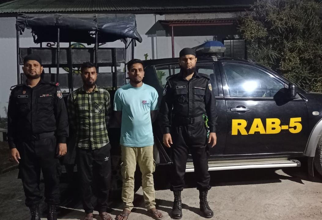 আটক ব্যক্তিরা হলেন- নওগাঁ জেলার মান্দা উপজেলার উত্তর শ্রীরামপুর এলাকার দেলোয়ার হোসেনের ছেলে রিপন মন্ডল(২৭) ও একই এলাকার মৃত নজরুল ইসলামের ছেলে সোহাগ সর্দার হামিদুল।