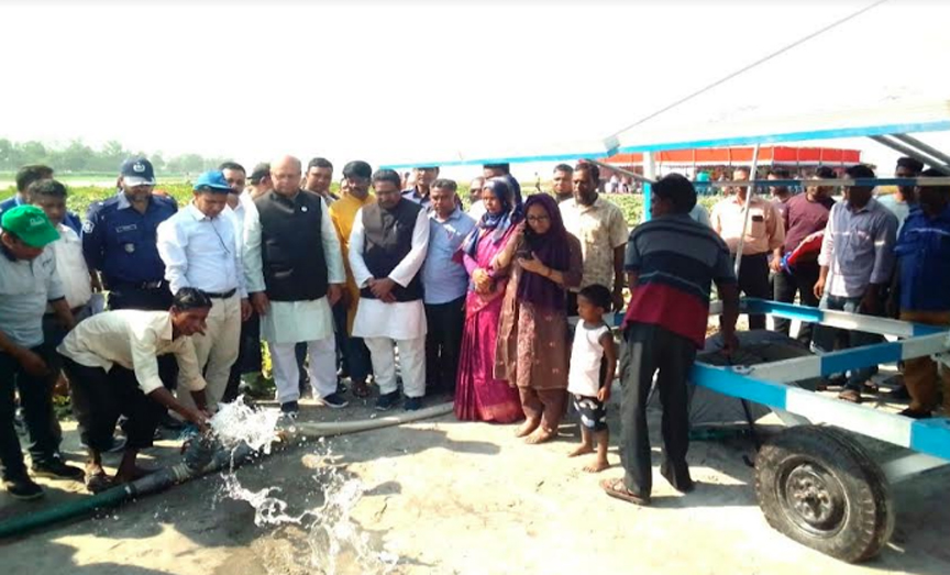 গঙ্গাচড়ায় এলজিআরডি প্রতিমন্ত্রীর পোর্টেবল সোলার ইরিগেশন পাম্প পরিদর্শন ও প্রকল্পের মাঠ দিবসে যোগদান