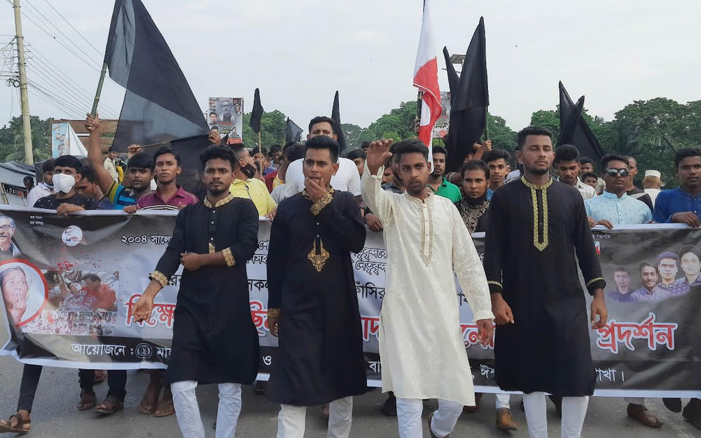 ময়মনসিংহের ঈশ্বরগঞ্জে ২১আগস্ট গ্রেনেড হামলার প্রতিবাদে ও আসামীদের দৃষ্টান্তমূলক শাস্তির দাবিতে উপজেলা ছাত্রলীগের উদ্যোগে শহরে কালো পতাকা প্রদর্শন, বিক্ষোভ মিছিল বের করা হয়। শনিবার বিকেলে মিছিল শেষে নেতা কর্মীরা আওয়ামীলীগের দলীয় কার্যালয়ের সামনে এক আলোচনা সভার আয়োজন করে।