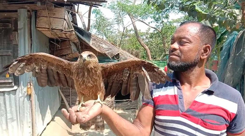 বাজপাখির সঙ্গে বন্ধন গড়ে উঠেছে এক জেলের