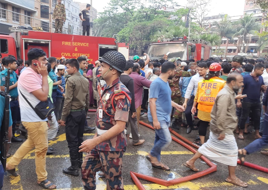 মঙ্গলবার সকাল ৬টা ১০ মিনিটের দিকে লাগা আগুন ফায়ার সার্ভিস, পুলিশ, র‍্যাব, সেনাবাহিনী, বিমান বাহিনী ও নৌবাহিনী নেভানোর চেষ্টা করেছে।