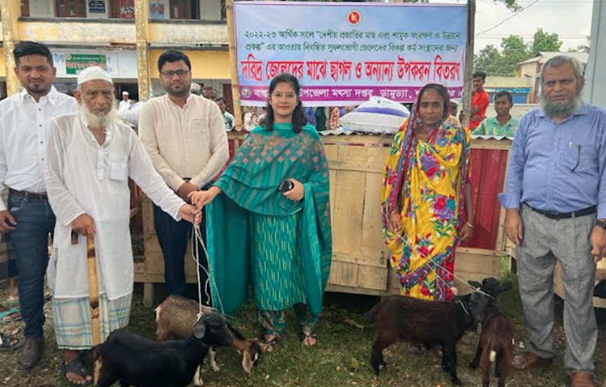 শরীয়তপুর ডামুড্যা উপজেলায় গত ৪ই এপ্রিল দেশী প্রজাতির মাছ এবং শামুক সংরক্ষণ ও উন্নয়নের প্রকল্পের আওতায় নিবন্ধিত সুফলভোগী জেলেদের বিকল্প কর্মসংস্থানের জন্য বাস্তবায়নের উপজেলা মৎস্য দপ্তরে পক্ষ থেকে ইউনিয়নের পাঁচজন করে মোট চারটি ইউনিয়নের বিশ জনকে চল্লিশটি ছাগল বিতরণ করেন এবং ছাগলের ঘর ও খাবারসহ বিতরণ করা হয়। প্রধান অতিথি উপজেলা নির্বাহী অফিসার হাছিবা খান। এ সময় উপস্থিত ছিলেন উপজেলা প্রকল্প বাস্তবায়ন কর্মকর্তা রেজাউল করিম, উপজেলা কৃষি কর্মকর্তা মোঃ সেকান্দার শেখ, উপজেলা মৎস্য কর্মকর্তা ইদ্রিস তালুকদার।