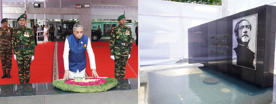 সাভার থেকে রাষ্ট্রপতি ধানমন্ডি ৩২ নম্বরে বঙ্গবন্ধু স্মৃতি জাদুঘরে গিয়ে বঙ্গবন্ধুর প্রতিকৃতিতে পুষ্পস্তবক অর্পণ করেন।