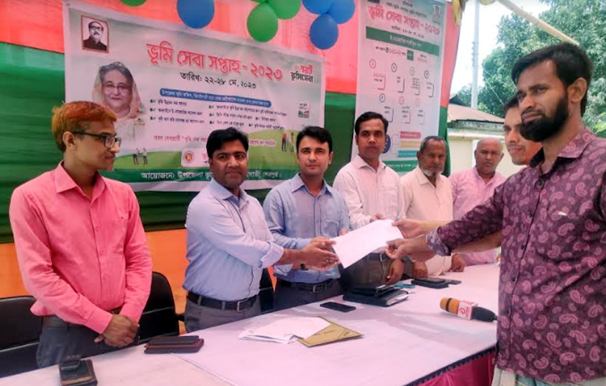 অনুষ্ঠানে নামজারির কপি আনুষ্ঠানিক ভাবে ভূমি মালিকদের কাছে প্রদান করেন।