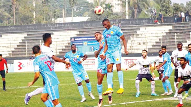 ৩৮ মিনিটে কলিনদ্রেসের ক্রসে এমেকা মাথা ছোঁয়াতে পারেননি। ৪৩ মিনিটে আবাহনী ব্যবধান বাড়িয়ে নেয়। মোহাম্মদ হৃদয়ের লং পাস থেকে বক্সের ভেতরে পেয়ে কলিনদ্রেস ডিফেন্ডার হাসান মুরাদকে ছিটকে দিয়ে দ্বিতীয় পোস্ট দিয়ে দারুণভাবে জাল কাঁপান। যোগ করা সময়ের তৃতীয় মিনিটে কলিনদ্রেসের ফ্রি-কিক পোস্ট ছুঁয়ে যায়। এই অর্ধে মোহামেডান মাঝেমধ্যে প্রতিপক্ষের অর্ধে গিয়ে বল নিয়ে গেলেও গোলকিপার সোহেলকে বড় পরীক্ষায় ফেলতে পারেনি। সেটপিস থেকে সুযোগ এসেছিল। কিন্তু কাজে লাগাতে পারেনি দিয়াবাতে-ইমানুয়েলরা। বিরতির পর ম্যাচ আরও জমে ওঠে। মোহামেডানের হয়ে মাঠে নামেন শাহরিয়ার ইমন ও জাফর ইকবাল। সাদা-কালোরা ঘুরে দাঁড়াতে শুরু করে। এই অর্ধে হয়েছে চার গোল। শুরুর দিকে ফ্রি কিক থেকে বল পেয়ে দিয়াবাতের জোরালো শট দূর দিয়ে যায়।
