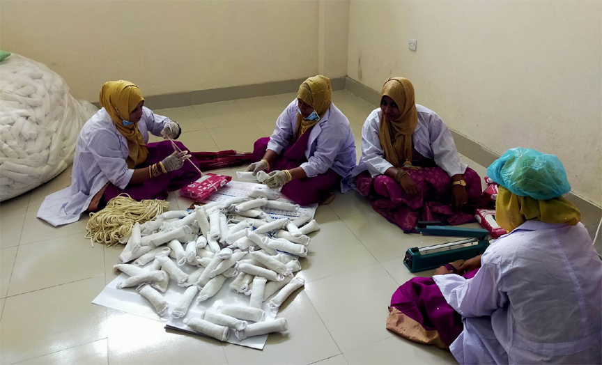 কুমারখালীর ৩০ নারী তৈরি করছেন ‘ইচ্ছে স্যানিটারি ন্যাপকিন’
