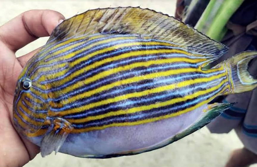দ্রব্যমূলের বাজারে মাছ ক্রয় যখন অসাধ্য ব্যাপার তখন উপায়হীন মান্নান চৌকিদার নিজের ডিঙ্গি নৌকা নিয়ে মাছ শিকারে যায় নদীতে। জাল তুলেই দেখেন রঙ্গিন মাছ। বুধবার দুপুরে পটুয়াখালীর কলাপাড়া উপজেলার রাবনাবাদ নদী মোহনায় ব্যতিক্রমি প্রজাতির এ মাছটি ধরা পড়ে। এটির শরীরে সাদা, হলুদ, কালো ও আকাশী বর্নের লম্বা দাগ রয়েছে। ওজন প্রায় সাড়ে তিনশ গ্রাম। এ বর্নের মাছ এর আগে দেখেনি জেলারা।