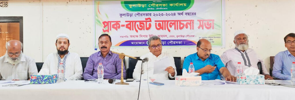 মৌলভীবাজারের কুলাউড়া পৌরসভার ২০২২-২০২৩ অর্থবছরের সংশোধিত এবং ২০২৩-২০২৪ অর্থবছরের প্রস্তাবিত বাজেট নিয়ে প্রাক-বাজেট আলোচনাসভা অনুষ্ঠিত হয়েছে। ১ জুন বৃহস্পতিবার দুপুরে পৌরসভা মিলনায়তনে আয়োজিত সভায় বিভিন্ন শ্রেণিপেশার পৌরবাসীরা পরামর্শমূলক বক্তব্য রাখেন।