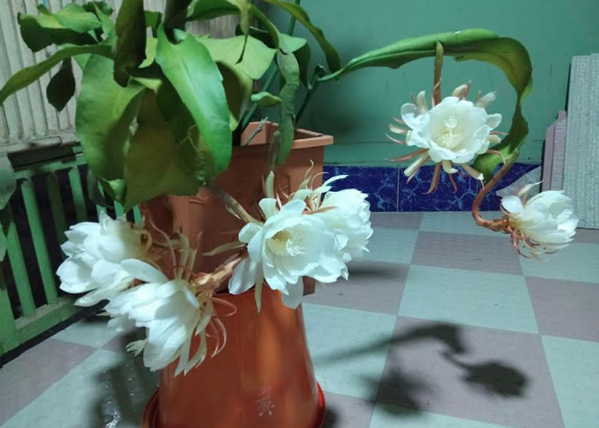গাছের চারা রোপণের পর দিন যায়, মাস যায়। এমনকি বছর পার হয়ে যায়। তারপরও দেখা মেলে না ফুলের। অবশেষে অপেক্ষার দুই বছরের মাথায় গত বছরের ২৭ জুন সোমবার রাত ১০টার দিকে ২টি নাইট কুইন ফুল ফুটেছিল।এবার ঠিক এক বছরের মাথায় আরো ৬টি ফুল ফুটলো।