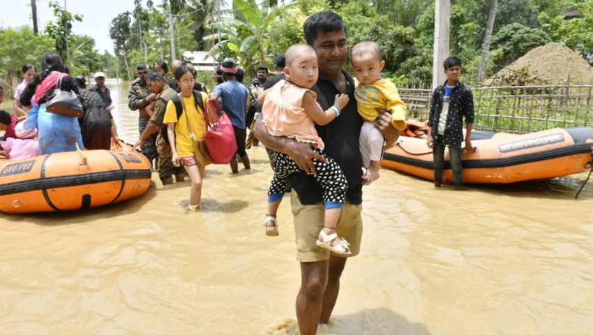 ভারতের আসামে বন্যা পরিস্থিতির উন্নতি হয়নি এখনো। আসামের রাজ্য বিপর্যয় ব্যবস্থাপনা কর্তৃপক্ষ এর (এএসডিএমএ) হিসেবে রাজ্যের বিভিন্ন অংশে বন্যার কারণে প্রাণ হারিয়েছেন তিনজন। এ ছাড়া নয়টি জেলা জুড়ে চার লাখেরও বেশি মানুষ ক্ষতিগ্রস্ত হয়েছে বলে জানিয়েছে ভারতীয় গণমাধ্যম পিটিআই। যদিও নির্দিষ্ট কিছু এলাকায় পানির স্তর কমতে শুরু করেছে তবে পরিস্থিতি এখনও ভয়াবহ। এএসডিএমএ’র তথ্যমতে, বাকসা, বরপেটা, দারং, ধুবড়ি, গোলপাড়া, কামরুপ, লখিমপুর, নলবাড়ি এবং উদালগুড়ি জেলার ৪ লাখ ৭ হাজার ৭০০ জনের বেশি মানুষ বন্যায় ক্ষতিগ্রস্ত হয়েছে। বর্তমানে, ১ হাজার ১১৮টি গ্রাম তলিয়ে গেছে এবং প্রায় ৮ হাজার ৪৬৯ হেক্টর ফসলি জমি ক্ষতিগ্রস্ত হয়েছে। বন্যায় ক্ষতিগ্রস্তদের সাহায্য করতে প্রশাসন ক্ষতিগ্রস্ত জেলা জুড়ে ১০১টি ত্রাণ শিবির স্থাপন করেছে যেখানে ৮১ হাজার ৩৫২জন লোকের থাকার ব্যবস্থা রয়েছে। এ ছাড়াও, পাঁচটি জেলায় ১১৯টি ত্রাণ বিতরণ কেন্দ্র চালু রয়েছে।