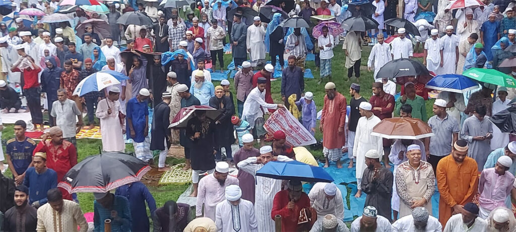 তবে আষাঢ়ের মাঝামাঝিতে অনুষ্ঠিত ঈদে নামাজ আদায় এবং পশু কোরবানি দুটোর ক্ষেত্রেই বিড়ম্বনা তৈরি করেছে বৃষ্টি।