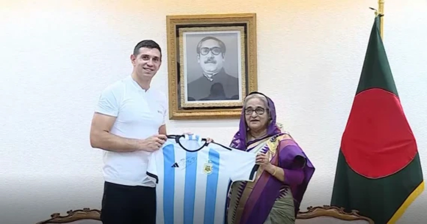 ফিফা বিশ্বকাপ কাতার ২০২২ বিজয়ী আর্জেন্টিনা দলের গোলরক্ষক এমিলিয়ানো মার্টিনেজ সোমবার (৩ জুলাই) প্রধানমন্ত্রী শেখ হাসিনার সঙ্গে সৌজন্য সাক্ষাৎ করেছেন।