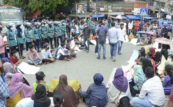 গণহারে অকৃতকার্য শিক্ষার্থীদের খাতার পুনর্মূল্যায়ন, দ্রুততম সময়ে বিশেষ পরীক্ষা গ্রহণসহ চার দফা দাবিতে রাজধানীর নীলক্ষেত মোড়ের একাংশ অবরোধ করেছেন ঢাকা বিশ্ববিদ্যালয় (ঢাবি) অধিভুক্ত সাত কলেজের শিক্ষার্থীরা। রোববার (২৯ আগষ্ট) বেলা সাড়ে ১১টার দিকে ঢাকা কলেজের সামনের সড়ক থেকে উঠে এসে শিক্ষার্থীরা নীলক্ষেত মোড়ে অবস্থান নেন। এর আগে সকাল ৯টা থেকে শিক্ষার্থীরা নীলক্ষেতের আশপাশে জড়ো হতে থাকেন। পরে বিক্ষোভ মিছিল করে নিউ মার্কেটের সামনের সড়ক দিয়ে ঢাকা কলেজের সামনের সড়ক অবরোধ করেন। এর কিছুক্ষণ পর শিক্ষার্থীরা নীলক্ষেত মোড়ে ফিরে এসে অবরোধ করতে চাইলে পুলিশের সঙ্গে বাগবিতন্ডা হয়। অবস্থানকালে শিক্ষার্থীরা চার দফা দাবি জানান।