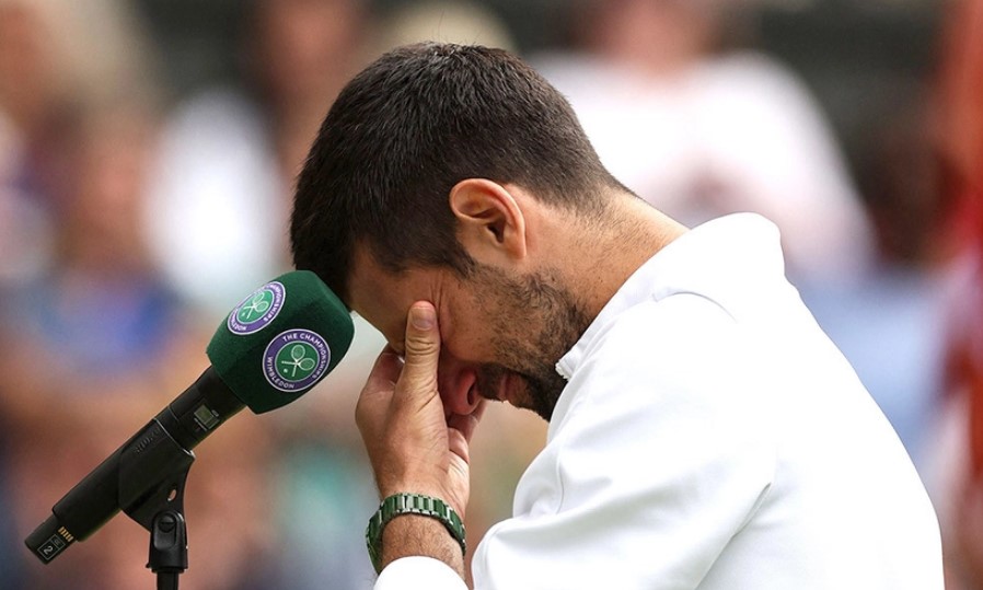 উইম্বলডনের শিরোপা জয় যেন অভ্যাসে পরিণত করেছিলেন নোভাক জোকোভিচ। উইম্বলডন শিরোপা জিতলেই প্রতিবার কোর্টের কিছুটা ঘাস ছিড়ে মুখে পুরে চিবিয়ে নেন এই সার্বিয়ান তারকা। গত চার আসরে এর ব্যতিক্রম হয়নি। কিন্তু হাঁটুর বয়সী কার্লোস আলকারাজের কাছে হেরে এই দফায় পুরনো সেই দৃশ্যর অবতারণা হলো না। বরং দেখা গেল অন্য এক জোকোভিচকে। যিনি পরাজয়ের পর কাঁদলেন। রবিবারের ফাইনালে জোকোভিচকে যেন খুঁজেই পাওয়া যায়নি! প্রচুর ভুল করেছেন ম্যাচজুড়ে। ঘাসের কোর্টে খোলা আকাশের নীচে খেলার সুযোগ পেয়েও অবশেষে তারুণ্যের কাছে হেরে গেলেন। এরপর তাকে হতাশায় র্যাকেট ভাঙতে দেখা যায়।