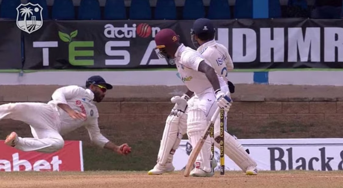 উইকেটটি হওয়া উচিত যদিও রাহানের নামে। রাউন্ড দা উইকেটে বল করে কিছুটা টার্ন ও বাউন্স আদায় করে নেন জাদেজা। লেগ স্টাম্পের বাইরে পিচ করা বল ব্ল্যাকউডের ব্যাটের কানা ছুঁয়ে যায় পেছনে। তবে কিপার ইশান কিষান হাতে জমাতে পারেননি। বল তার গ্লাভসে লেগে বেরিয়ে যাচ্ছিল। স্লিপে থাকা রাহানে চোখের পলকে বাঁদিকে ঝাঁপিয়ে এক হাতে মুঠোয় জমান বল। ব্যাটসম্যান ব্ল্যাকউড যেন বিশ্বাসই করতে পারছিলেন না। এরপর বৃষ্টিতে খেলা বন্ধ থাকে আরেক দফায়। এর ফাঁকেই মোহাম্মদ সিরাজের ভেতরে ঢোকা বলে আলগা শটে বোল্ড হন জশুয়া দা সিলভা। তবে আথানেজ ও জেসন হোল্ডার আর বিপদ হতে দেননি। ওয়েস্ট ইন্ডিজের ড্রয়ের অভিযান তাই চলমান।