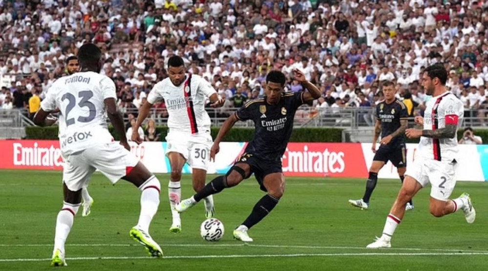 নামের পাশে থেকে ‘টিনএজ’ শব্দটা এইতো মাত্র কদিন হলো সরেছে। এরইমধ্যে তারকাখ্যাতি অবশ্য পেয়ে গেছেন জুড বেলিংহ্যাম। তবে অপেক্ষা ছিল রিয়াল মাদ্রিদের জার্সিতে এই তরুণের নতুন শুরুটা কেমন হয়, তা দেখার। দারুণ কিছুর ইঙ্গিতই দিয়েছেন তিনি। নজর কাড়া পারফর্ম করে অভিষেকেই এই ইংলিশ মিডফিল্ডার জয় করে নিয়েছেন কোচ কার্লো আনচেলত্তির মন। যুক্তরাষ্ট্র সফরে বাংলাদেশ সময় সোমবার সকালে এসি মিলানের বিপক্ষে ম্যাচ দিয়ে প্রাক-মৌসুম প্রস্তুতি শুরু করে রিয়াল। ক্যালিফোর্নিয়ার রোজ বোলে ৭০ হাজার দর্শকের সামনে প্রথমার্ধে দুই গোল হজমের পর দুর্দান্তভাবে ঘুরে দাঁড়ায় আনচেলত্তির দল। দ্বিতীয়ার্ধে তিনবার জালে বল পাঠিয়ে ৩-২ গোলে জয় নিশ্চিত করে তারা। ২৫তম মিনিটে ইংলিশ ডিফেন্ডার ফিকায়ো তোমোরির গোলে মিলান এগিয়ে যায়।