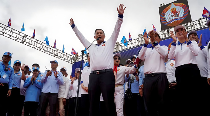 কম্বোডিয়ায় সাধারণ নির্বাচনে ক্ষমতাসীন কম্বোডিয়ান পিপলস পার্টি (সিপিপি) একতরফা জয়ের দাবি করার পর যুক্তরাষ্ট্র এই পদক্ষেপের ঘোষণা দিল। ক্ষমতাসীন কম্বোডিয়ান পিপলস পার্টির (সিপিপি) নেতা বর্তমান প্রধানমন্ত্রী হুন সেন। বিগত ৩৮ বছর ধরে ৭০ বছর বয়সী হুন সেন কম্বোডিয়ার ক্ষমতায় আছেন। তবে নির্বাচনের বিশ্বাসযোগ্যতা নিয়ে পশ্চিমাদের উদ্বেগকে পাত্তাই দেননি প্রধানমন্ত্রী হুন সেন। নির্বাচনে জয়ী হলে তার বড় ছেলে হুন মানেটের হাতে ক্ষমতা হস্তান্তর করবেন বলে ঘোষণা দিয়েছিলেন তিনি। সূত্র : রয়টার্স