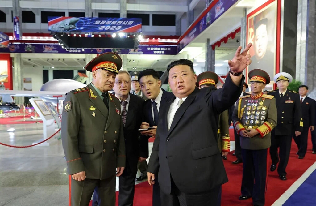 উত্তর কোরিয়ার প্রতিরক্ষামন্ত্রী কাং সান নাম বলেন, ‘রাশিয়ার ‘ন্যায়বিচারের জন্য যুদ্ধ’ এবং তার সার্বভৌমত্ব রক্ষার লড়াইকে সমর্থন করে উত্তর কোরিয়া।’কেসিএনএ জানিয়েছে, নতুন অস্ত্র ও সামরিক সরঞ্জামের প্রদর্শনীর সময় শোইগু’র পাশে ছিলেন কিম। রাষ্ট্রীয় মিডিয়ায় প্রকাশিত ছবিতে মাল্টি-অ্যাক্সেল ট্রান্সপোর্টার লঞ্চারে উত্তরের কিছু ব্যালিস্টিক ক্ষেপণাস্ত্র প্রদর্শনের দৃশ্য দেখা গেছে। আরেকটি ছবিতে একটি ড্রোন দেখা গিয়েছে; বিশ্লেষকরা এটিকে নতুন ধরণের ড্রোন বলে ধারণা করছেন। বিশ্লেষকরা বলছেন, রাশিয়ার শীর্ষ নেতৃত্বের উত্তর কোরিয়ার ক্ষেপণাস্ত্র পরিদর্শনের বিষয়টা এটাই প্রমাণ করে যে পিয়ংইয়ং-এর পারমাণবিক কর্মসূচিকে রাশিয়া স্বীকৃতি দিয়েছে।