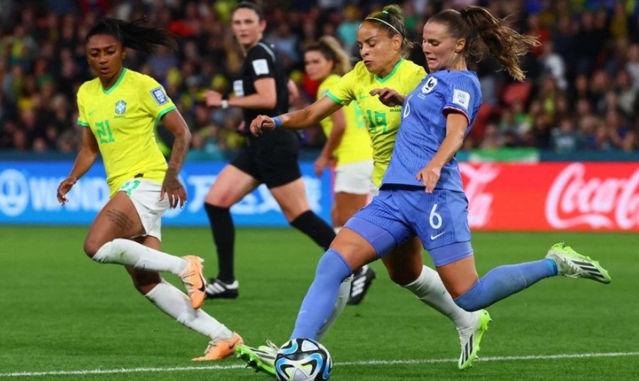 পানামার বিপক্ষে ৪-০ গোলের জয় দিয়ে এবারের নারী বিশ্বকাপ যাত্রা শুরু করেছিল ব্রাজিল। দুর্দান্ত জয়ের পর টুর্নামেন্টে নিজেদের দ্বিতীয় ম্যাচেই হারের লজ্জা পেয়েছে দলটি। শনিবার গ্রুপ-‘এফ’ এ নিজেদের দ্বিতীয় ম্যাচে ফ্রান্সের কাছে ব্রাজিলের মেয়েরা হেরেছে ২-১ গোলে। অস্ট্রেলিয়ার ব্রিজবেনে ম্যাচের প্রথমার্ধে ১-০ গোলে এগিয়ে ছিল ফ্রান্স। ১৭তম মিনিটে আনে ইউজেনি লে সমারের গোলে এগিয়ে যায় ফরাসিরা। ৫৮তম মিনিটে দেবিনহার গোলে ম্যাচে ১-১ এ সমতা আনে ব্রাজিল। ৮৩তম মিনিটে অধিনায়ক ওয়েন্ডি রেনার্ডের গোলে জয় নিয়ে মাঠ ছাড়ে ফ্রান্স। এই জয়ে ২ ম্যাচে ১টি করে জয় ও ড্রতে ৪ পয়েন্ট নিয়ে টেবিলের শীর্ষে উঠে শেষ ষোলোর পথে এগিয়ে গেল ফ্রান্স।