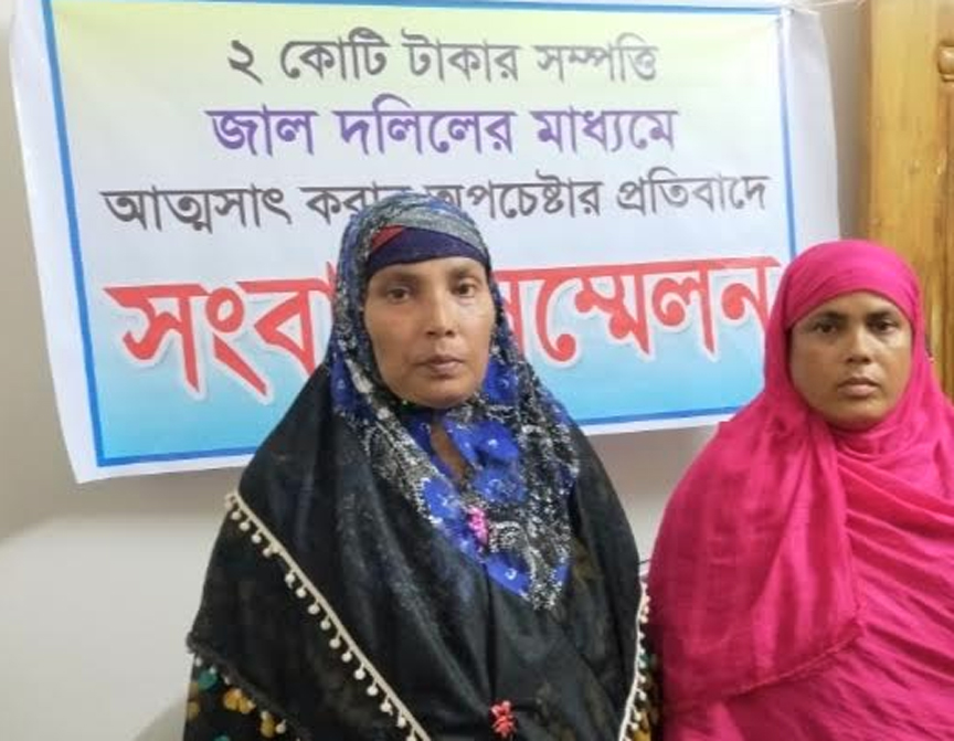 সংবাদ সম্মেলনে ইরানী ও লাকী আক্তার বলেন, আমার মাতা মোছাঃ মনোয়ারা বেগমের নামে সাব কবলা দলিল মূলে শ্রীবরদী পৌরসভার পোরাগড় বাজারে মেইন রোড সংলগ্ন ২০ শতাংশ জমি রয়েছে। সেখানে ৪টি দোকান ঘর ও হাফ বিল্ডিং বসত ঘর রয়েছে। গত ১ জানুয়ারী ২০১৯ সালে আমার মা মনোয়ারা বেগম ময়মনসিংহ মেডিকেল কলেজ হাসপাতালে চিকিৎসাধীন অবস্থায় মারা যায়। মৃত্যুর প্রায় ১০ মাস পর ১৩ নভেম্বর ২০১৯ সালে হেবা ঘোষণার মাধ্যমে আমাদের সহোদর ভাই মঞ্জুরুল ইসলাম মঞ্জু প্রতারণা করে শ্রীবরদী সাব রেজিস্ট্রি অফিসে নিজ নামে দলিল রেজিস্ট্রি করে। যাহার দলিল নং-৫৬৪৭। এনিয়ে আমরা দুই বোন সুবিচারের প্রত্যাশায় বিজ্ঞ সিআর আমলি আদালতে দলিল গ্রহিতা মঞ্জুসহ ৫ জনের নাম উল্লেখ করে মামলা দায়ের করেছি।