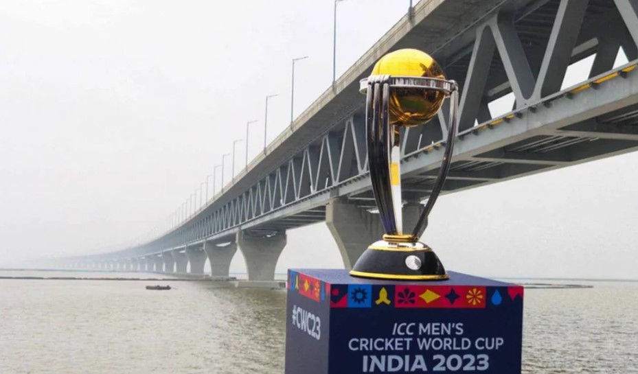 আসন্ন ওয়ানডে বিশ্বকাপ শুরু হতে বাকি দুই মাস। বিশ্ব ভ্রমণে বের হয়েছে ওয়ানডে বিশ্বকাপের ট্রফি। সেই ধারাবাহিকতায় এবার বাংলাদেশে এসেছে এই ট্রফি। রোববার দিবাগত রাতে ঢাকায় এসে পৌঁছায় ট্রফিটি। সোমবার অফিসিয়াল ফটোশুটের জন্য পদ্মা বহুমুখী সেতুতে নেওয়া হয়েছে বিশ্বকাপের ট্রফি। পূর্ব ঘোষিত সূচি অনুযায়ী ফটোসেশনের জন্য ট্রফিটি হেলিকপ্টরে করে পদ্মা সেতুতে নেওয়ার কথা ছিল। তবে বৈরী আবহাওয়ার জন্য সড়ক পথে নেওয়া হয় পদ্মা সেতুতে। ফটোসেশন শেষে ফিরে রাজধানীর একটি হোটেলে রাখা হবে ট্রফিটি।