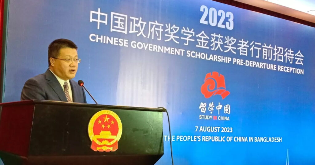সোমবার সন্ধ্যায় ঢাকায় চীনের দূতাবাসে ২০২৩ চীনা সরকারি বৃত্তি (সিজিএস) প্রাপ্তদের বিদায় সংবর্ধনা অনুষ্ঠিত হয়।