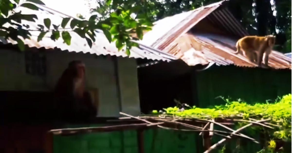 শুক্রবার (১৮ আগস্ট) সকালে কুড়িগ্রাম পৌর শহরের পলাশবাড়ী পাঠান এলাকায় বানর দুটি দেখে এলাকাবাসী।