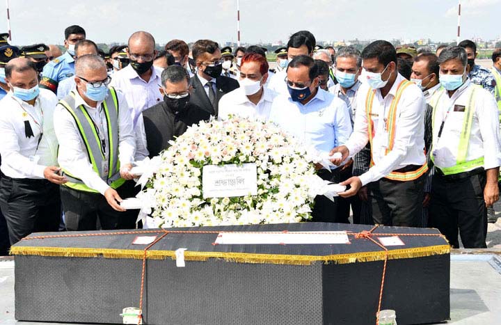 বৃহস্পতিবার বেসামরিক বিমান পরিবহন ও পর্যটন প্রতিমন্ত্রী মো: মাহবুব আলী হযরত শাহজালাল আন্তর্জাতিক বিমানবন্দরে বিমান বাংলাদেশ এয়ারলাইন্সের পাইলট ক্যাপ্টেন নওশাদ আতাউল কাইয়ুম এর মরদেহে ফুল দিয়ে শ্রদ্ধা জানান।