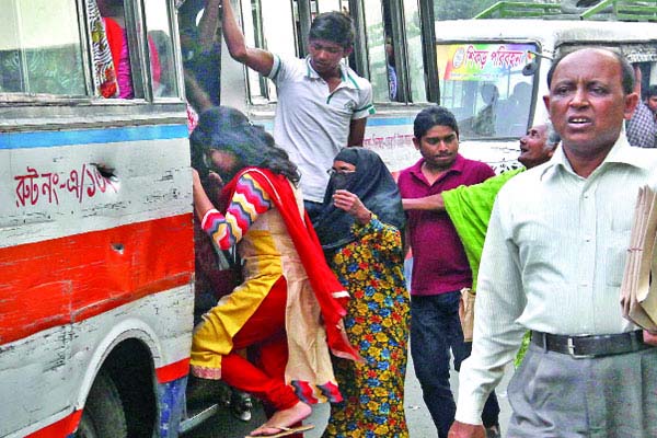 আর কোনভাবে বাসে উঠতে পারলেও রক্ষা পাওয়া যায় না বাসের হেলপারের কাছ থেকে। কোন না কোন অজুহাতে তার যেন গায়ে স্পর্শ করতে হবে। আর মাঝে মাঝে কিছু পুরুষ যাত্রীদের হয়রানি তো আছেই।