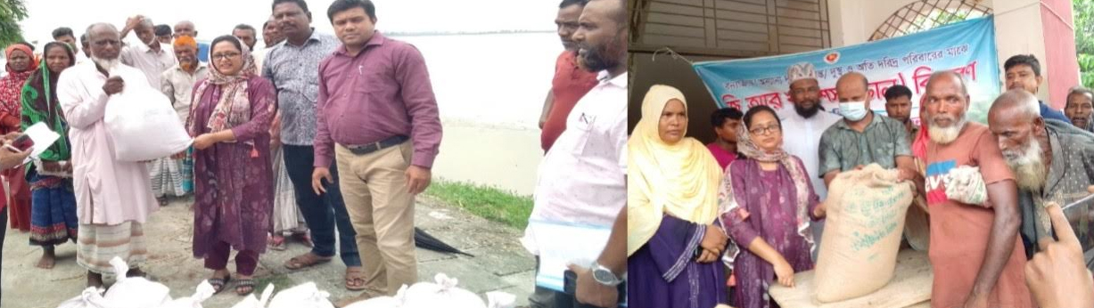 শনিবার ও রোববার ওইসব ইউনিয়নে গিয়ে ইউপি চেয়ারম্যান ও মেম্বারদের সাথে পানিবন্দি মানুষের মাঝে ১০ কেজি জিআর চাল ও শুকনা বিতরন করছেন উপজেলা নির্বাহী অফিসার নাহিদ তামান্না ও উপজেলা প্রকল্প বাস্তবায়ন কর্মকর্তা সজিবুল করিম। শনিবার রাতে তিনি লক্ষীটারী ইউনিয়নে ও রোববার নোহালী, আলমবিদিত, গজঘণ্টা ইউনিয়নে বিতরন করেন।