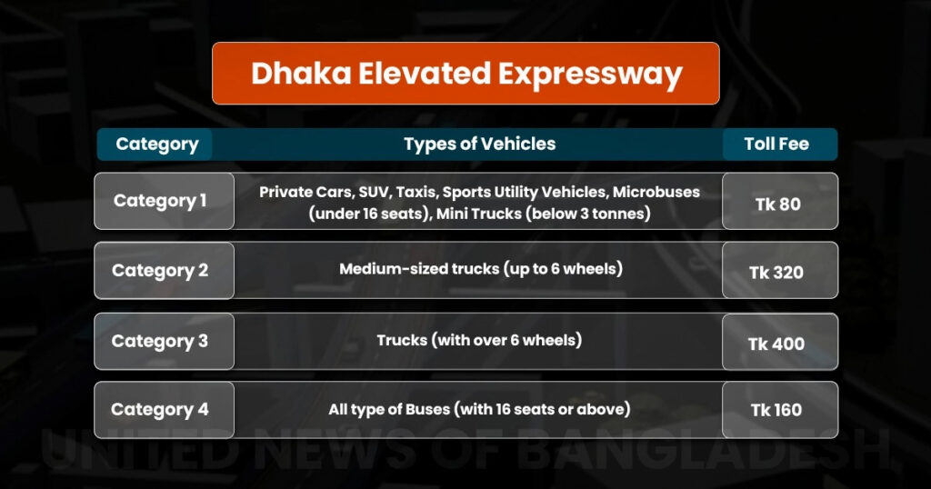 ঢাকা এলিভেটেড এক্সপ্রেসওয়েতে কত টাকা টোল দিয়ে চলবে গাড়ি
