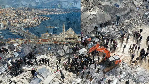 ২.৬ ফেব্রুয়ারি ২০২৩, তুরস্ক-সিরিয়া: ওই দিন ভোরে দেশটির ইতিহাসে স্মরণকালের শক্তিশালী ভূমিকম্প আঘাত হানে। এতে ৫০ হাজারের মতো মানুষ প্রাণ হারান।