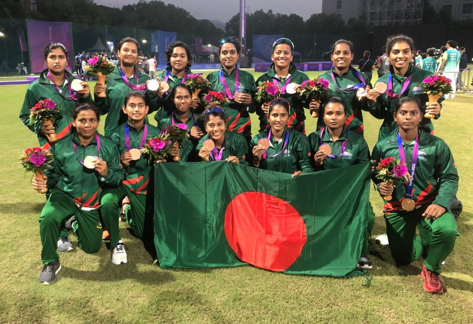 বাংলাদেশ এই বিপদ কাটিয়ে ওঠে স্বর্ণার ব্যাটে হাল ধরেন। জয় থেকে ৮ রান দূরে থাকতে তার সঙ্গী রিতু ৭ রানে থামেন। বাকি পথ পাড়ি দেন স্বর্ণা ও সুলতানা খাতুন। স্বর্ণা ইনিংস সেরা ১৪ রানে অপরাজিত ছিলেন। ৯ বছর পর এশিয়ান গেমসে পদক পেলো নারী ক্রিকেট দল। এর আগে ২০১৪ সালের ফাইনালে পাকিস্তানের কাছে হেরে বাংলাদেশ রৌপ্য পদক জিতেছিল। এবার তৃতীয় স্থান নির্ধারণী ম্যাচে সেই দলকে হারিয়ে ব্রোঞ্জ জিতলো। এই টুর্নামেন্টে তৃতীয়বার পদক পেলেন বাংলাদেশের নারী ক্রিকেটাররা। ২০১০ সালে চীনে প্রথমবার তাদের গলায় রুপার পদক শোভা পায়। ওইবারও ফাইনালে তারা পাকিস্তানের কাছে হেরে রানার্সআপ হয়।