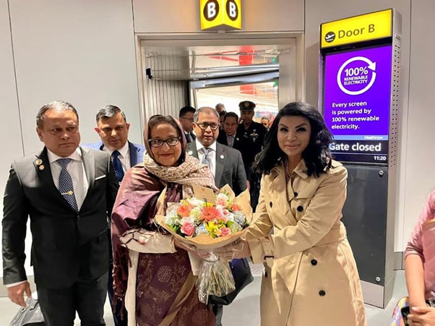 যুক্তরাজ্যে বাংলাদেশের হাইকমিশনার সাইদা মুনা তাসনিম বিমানবন্দরে প্রধানমন্ত্রীকে স্বাগত জানান।