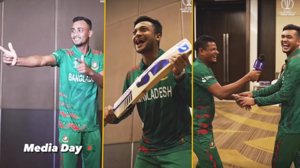 বিশ্বকাপ শুরু হতে বাকী আর মাত্র কয়েকদিন। আগামী ৫ অক্টোবর ভারতের মাটিতে পর্দা উঠতে যাচ্ছে ওয়ানডে বিশ্বকাপের ১৩তম আসরের। বৈশ্বিক এই আসরে অংশ নিতে ভারতে অবস্থান করছে বাংলাদেশ দল। তার আগে মাঠের বাইরের বিষয় নিয়ে বেশ সরগরম দেশের ক্রিকেট অঙ্গন। তবে বিশ্বকাপের প্রস্তুতি ম্যাচে শ্রীলঙ্কাকে ৭ উইকেটে হারিয়ে পরিস্থিতি কিছুটা পরিবর্তন হয়েছে। বিশ্বকাপ শুরুর আগে শনিবার ‘মিডিয়া ডে’র আয়োজন করেছিল আন্তর্জাতিক ক্রিকেট কাউন্সিল (আইসিসি)। সেখানে বেশ ফুরফুরে মেজাজে দেখা গেছে টাইগার ক্রিকেটারদের। বাংলাদেশের অফিসিয়াল ফটো-শ্যুটের কিছু মুহূর্তের সংক্ষিপ্ত একটি ভিডিও (রিল) অফিসিয়াল ফেসবুক পেইজে পোস্ট করেছে আইসিসি।