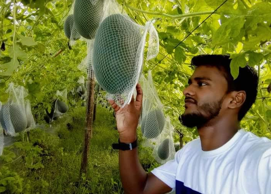কানাইঘাটে মালচিং পদ্ধতিতে তরমুজ ও সাম্মাম চাষে সফল আশিক