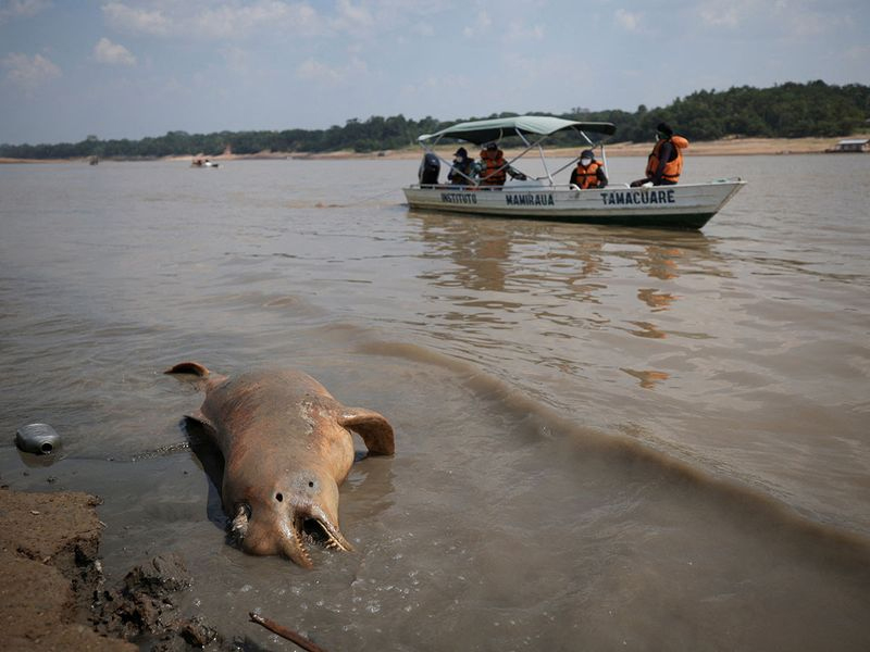 গত সপ্তাহে ব্রাজিলের আমাজন নদীর একটি উপনদীতে ১২০টি মৃত ডলফিন ভেসে ওঠে। বিশেষজ্ঞরা সন্দেহ করছেন, মারাত্মক খরা এবং তাপের কারণে ওই ডলফিনগুলো মারা গেছে। ব্রাজিলের বিজ্ঞান, প্রযুক্তি ও উদ্ভাবন মন্ত্রণালয়ের একটি গবেষণা গ্রুপ মামিরাউয়া ইনস্টিটিউট জানিয়েছে, স্থানীয় সময় সোমবার টেফে লেকের আশপাশে আরো দুটি মৃত ডলফিন ভেসে উঠেছে। দেশটির বিশেষজ্ঞরা ধারণা করছেন, পানির তাপমাত্রার কারণেই মৃত্যু হয়েছে ডলফিনগুলোর। কারণ গত সপ্তাহ থেকে টেফে লেক অঞ্চলের তাপমাত্রা ৩৯ ডিগ্রি সেলসিয়াস ছাড়িয়েছিল।