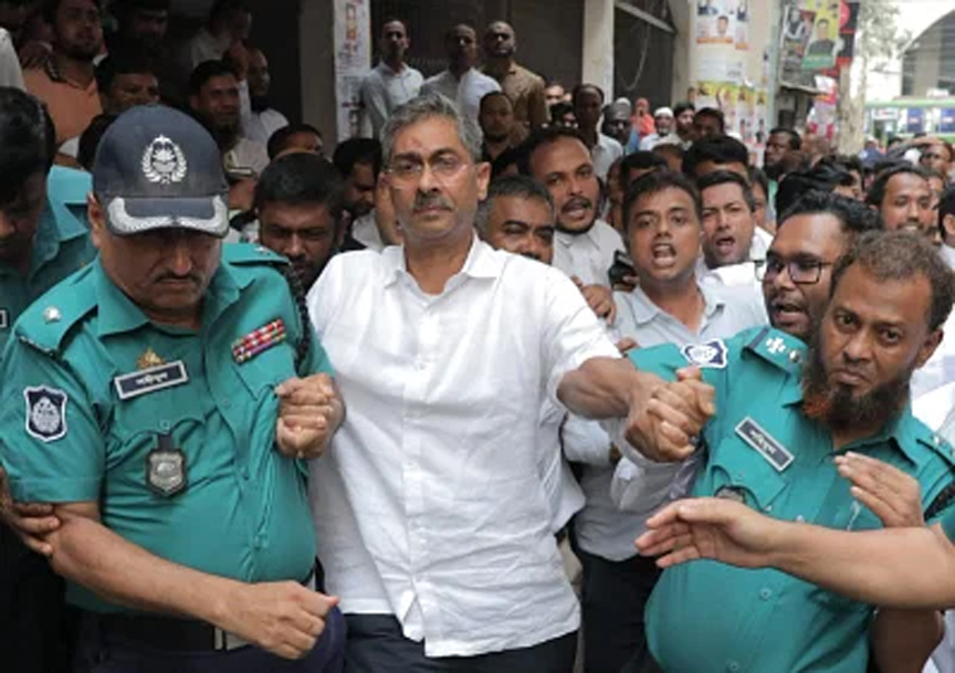 ধানমন্ডি থানার নাশকতার মামলায় বুধবার শহীদ উদ্দিন চৌধুরীকে ঢাকার আদালতে হাজির করে পুলিশ।
