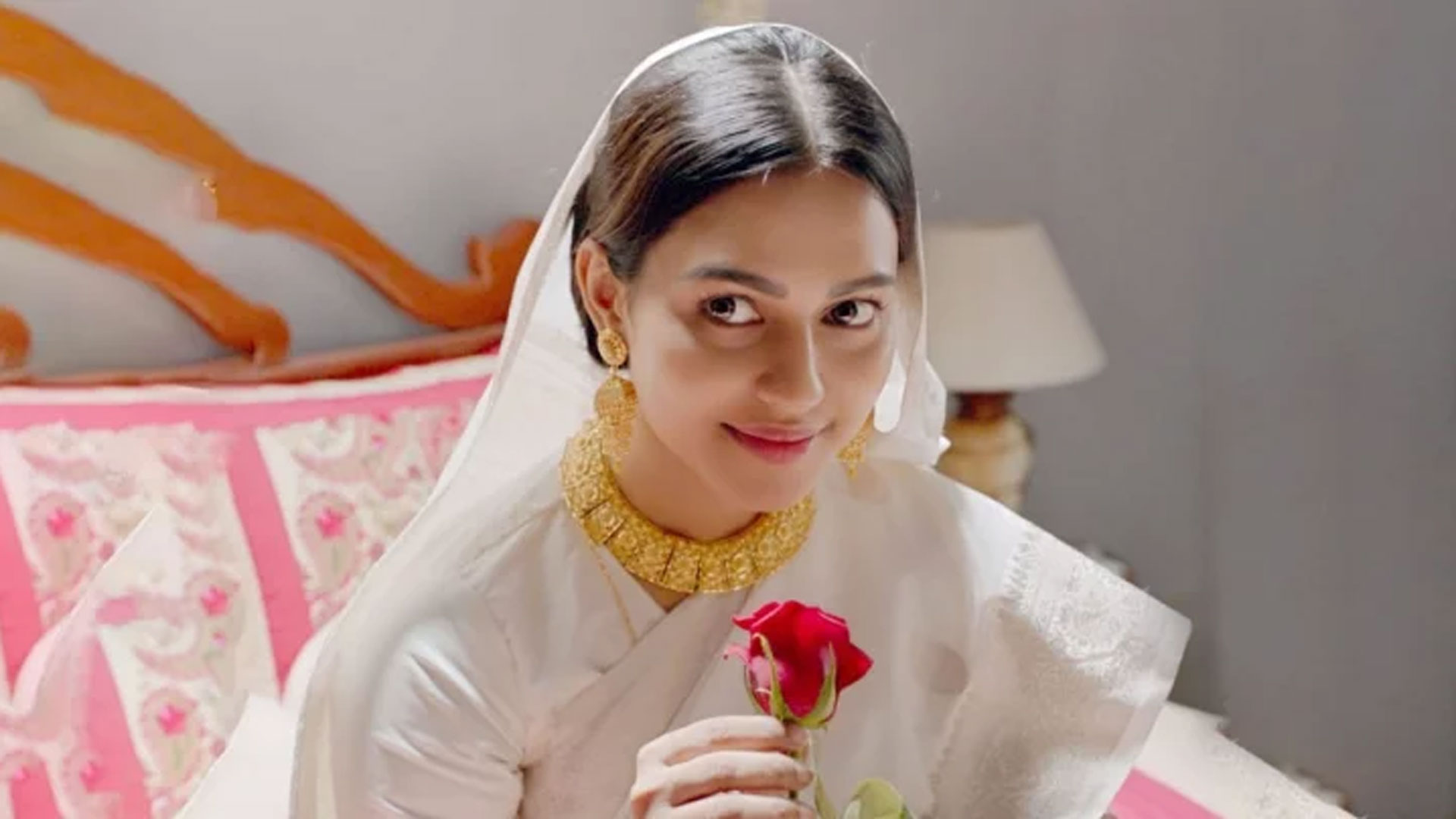 লাল গোলাপ হাতে শেখ হাসিনা চরিত্রে নুসরাত