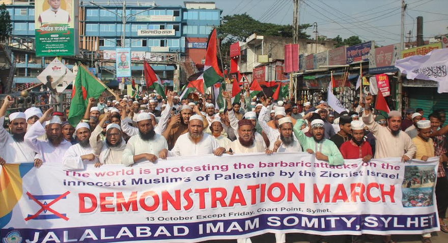 ইসরায়েলের আগ্রাসনের বিরুদ্ধে জালালাবাদ ইমাম সমিতির বিক্ষোভ মিছিল