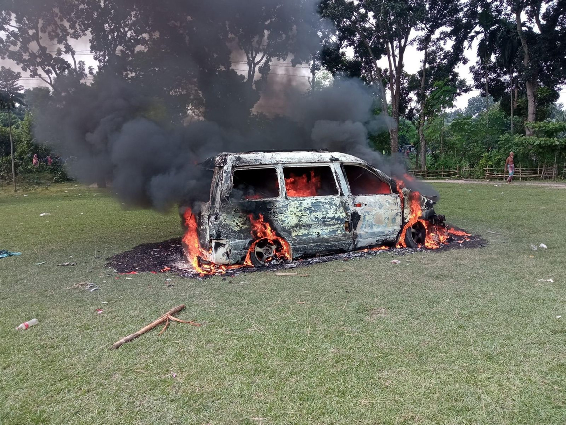 ফরিদপুরে স্কুলছাত্রীকে অপহরণচেষ্টার অভিযোগে ২ জনকে গণপিটুনি, মাইক্রোবাসে আগুন