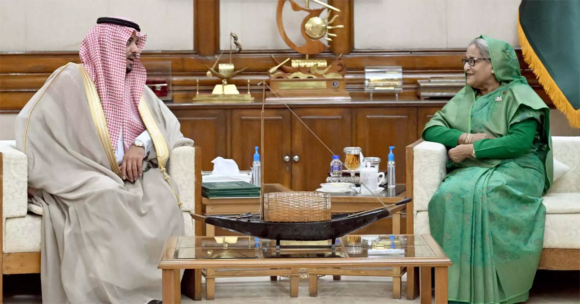 বৃহস্পতিবার ইসরায়েল ও ফিলিস্তিনের মধ্যে চলমান সংঘাতের প্রেক্ষাপটে সৌদি আরবের রাষ্ট্রদূত ঈসা বিন ইউসুফ আল দুহাইলান প্রধানমন্ত্রীর সরকারি বাসভবন গণভবনে তার সঙ্গে সাক্ষাৎকালে তিনি এ আহ্বান জানান।