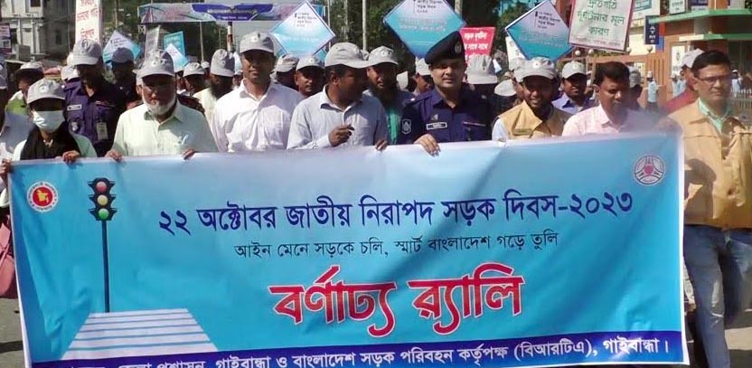 জাতীয় নিরাপদ সড়ক দিবস উপলক্ষে রোববার গাইবান্ধা জেলা প্রশাসন ও বাংলাদেশ সড়ক পরিবহন কর্তৃপক্ষের উদ্যোগে বিভিন্ন কর্মসূচি পালন করা হয়। কর্মসূচির মধ্যে ছিল বর্ণাঢ্য র‌্য্যালী, আলোচনা সভা ও সচেতনতামূলক লিফলেট বিতরন। বর্ণাঢ্য র‌্যালীটি জেলা প্রশাসকের কার্যালয় চত্বর থেকে বের হয়ে শহরের বিভিন্ন সড়ক প্রদক্ষিন করে পুনরায় সেখানে গিয়ে শেষ হয়। দিবসটি উপলক্ষে এবারের প্রতিপাদ্য ছিল ‘আইন মেনে সড়কে চলি স্মার্ট বাংলাদেশ গড়ে তুলি’।