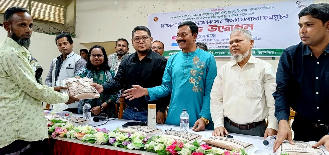 ময়মনসিংহের হালুয়াঘাটে ২০২৩-২০২৪ অর্থ বছরে কৃষি প্রণোদনার কর্মসূচির আওতায় রবি মৌসুমে গম, ভুট্টা, সরিষা, সূর্যমুখী, চিনাবাদাম, শীতকালীন পেয়াজ ও মুগ ফসলের আবাদ ও উৎপাদন বৃদ্ধির লক্ষ্যে কৃষি প্রণোদনার কর্মসূচির আওতায় ১২টি ইউনিয়ন ও একটি পৌসভার ক্ষুদ্র ও প্রান্তিক কৃষকদের মধ্যে বিনামূল্যে বীজ ও রাসায়নিক সার বিতরণ কার্যক্রম শুরু হয়েছে।