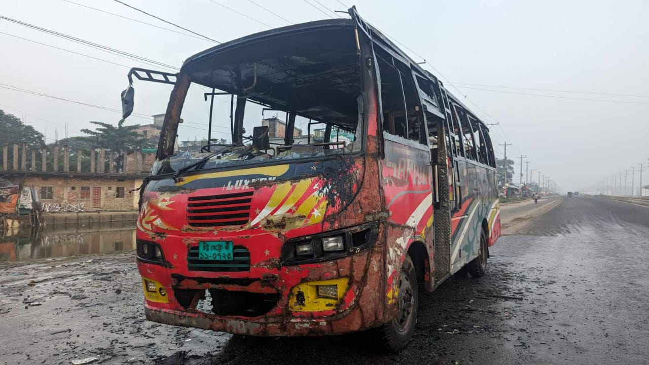 এই নিয়ে ৭ ঘন্টার ব্যবধানে দু’টি বাস পুড়িয়ে দেওয়া হলো।