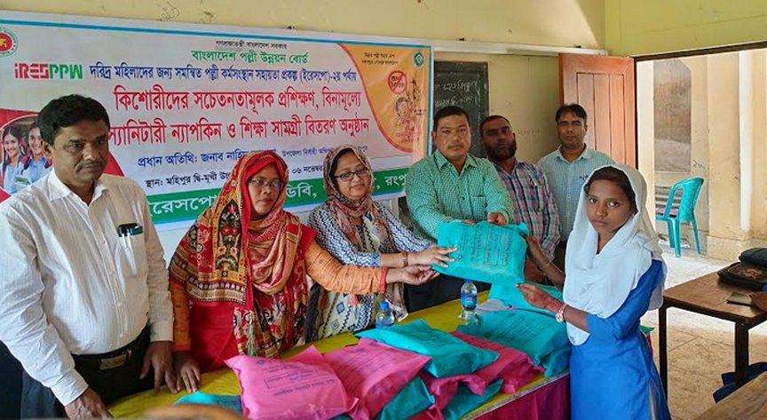 “উন্নত পল্লী উন্নত দেশ বঙ্গবন্ধুর সোনার বাংলাদেশ” এ প্রতিপাদ্যে রংপুরের গঙ্গাচড়ায় মহিপুর দ্বি-মূখী উচ্চ বিদ্যালয়ে সোমবার (৬ নভেম্বর) বাংলাদেশ পল্লী উন্নয়ন বোর্ডের অধীনে দরিদ্র মহিলাদের জন্য সমন্বিত পল্লী কর্মসংস্থান সহায়তা প্রকল্প (ইরেসপো)-২য় পর্যায় কিশোরীদের সচেতনতামূলক প্রশিক্ষণ ও বিনামূল্যে স্যানিটারী ন্যাপকিন এবং শিক্ষা সামগ্রী বিতরণ করা হয়।