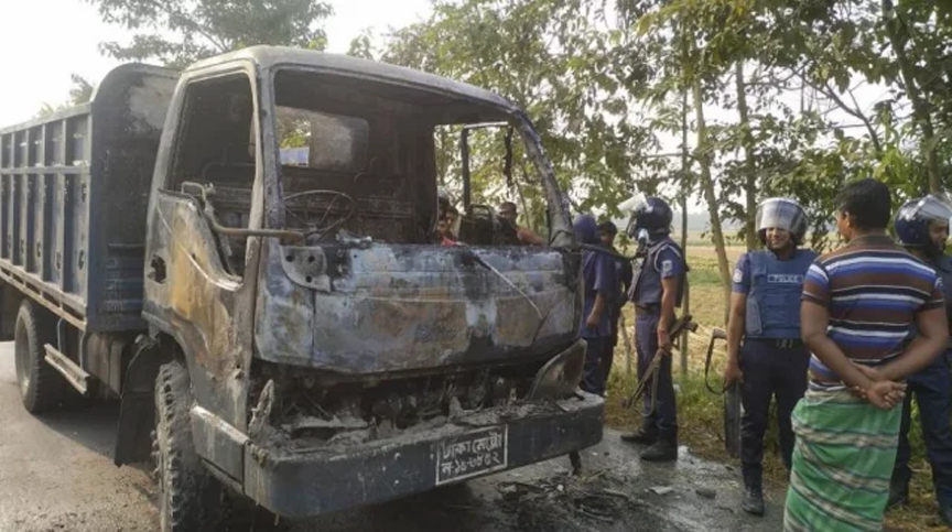 মোহনপুর থানার ভারপ্রাপ্ত কর্মকর্তা (ওসি) হরিদাস মণ্ডল ঘটনার সত্যতা নিশ্চিত করে বলেন, রাজশাহী থেকে একটি পণ্যবাহী ট্রাক বাগমারা উপজেলার উদ্দেশে রওনা হয়। ট্রাকে মুরগির খাওয়ার ফিড ছিল। মোহনপুর নন্দনহাট এলাকায় পৌঁছালে পাঁচটি মোটরসাইকেলে করে এসে দুর্বৃত্তরা ভাঙচুর করে এবং ট্রাকে আগুন ধরিয়ে দেয়।