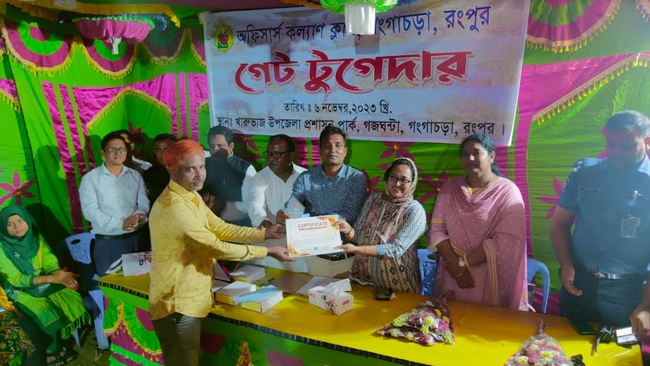 ফেসবুকে পোস্টকৃত সর্বচ্চ লাইক পাওয়া ফটোর ফেসবুক আইডির ৩ জনকে বিজয়ী করে কর্তৃপক্ষ। সমবায় অফিসার ও উপজেলা অফিসার্স কল্যাণ ক্লাবের সাধারণ সম্পাদক আবতাবুজ্জামান চয়নের উপস্থাপনায় গেট টুগেদার অনুষ্ঠানে আরো উপস্থিত ছিলেন উপজেলা কৃষি অফিসার মারুফা ইফতেখার সিদ্দিকা, মৎস্য অফিসার দীপা রানী বিশ্বাস, গঙ্গাচড়া মডেল থানার অফিসার ইনচার্জ দুলাল হোসেন, গজঘণ্টা ইউপি চেয়ারম্যান লিয়াকত আলী, গঙ্গাচড়া ইউপি চেয়ারম্যান মাজহারুল ইসলাম লেবু, উপজেলা প্রকৌশলী মজিদুল ইসলামসহ সকল অফিসারবৃন্দ, বিজয়ীরা ও খারুভাজ বিলের মৎস্য চাষী সমিতির সদস্যসহ গজঘণ্টা জাতীয় পার্টির সাংগঠনিক সম্পাদক সোহাগ মিয়া উপস্থিত ছিলেন।