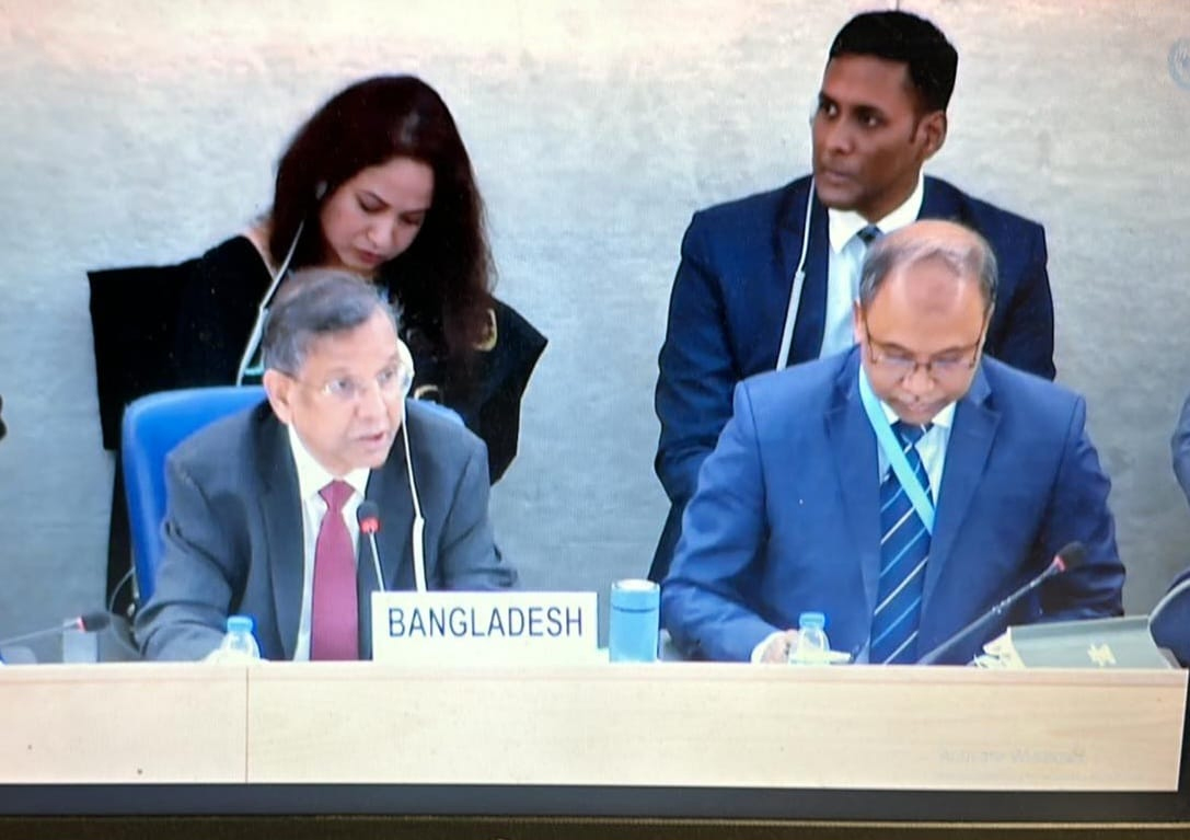 পররাষ্ট্র সচিব মাসুদ বিন মোমেন এবং জেনেভায় জাতিসংঘ কার্যালয়ে বাংলাদেশের স্থায়ী প্রতিনিধি মোহাম্মদ সুফিউর রহমানসহ অন্যরা অংশ নিচ্ছেন।