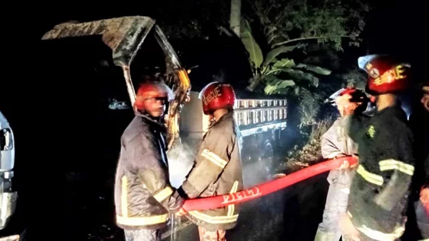 ঢাকার দোহার বাজার এলাকায় ট্রাকটিতে আগুন দেওয়া হয়।